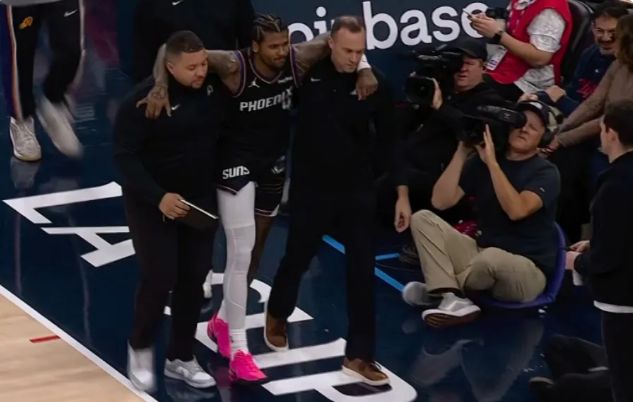 太阳新援杰伦-格林复出第二场比赛,首节登场6分47秒疑似右腿筋拉伤,被搀扶离场伤退。